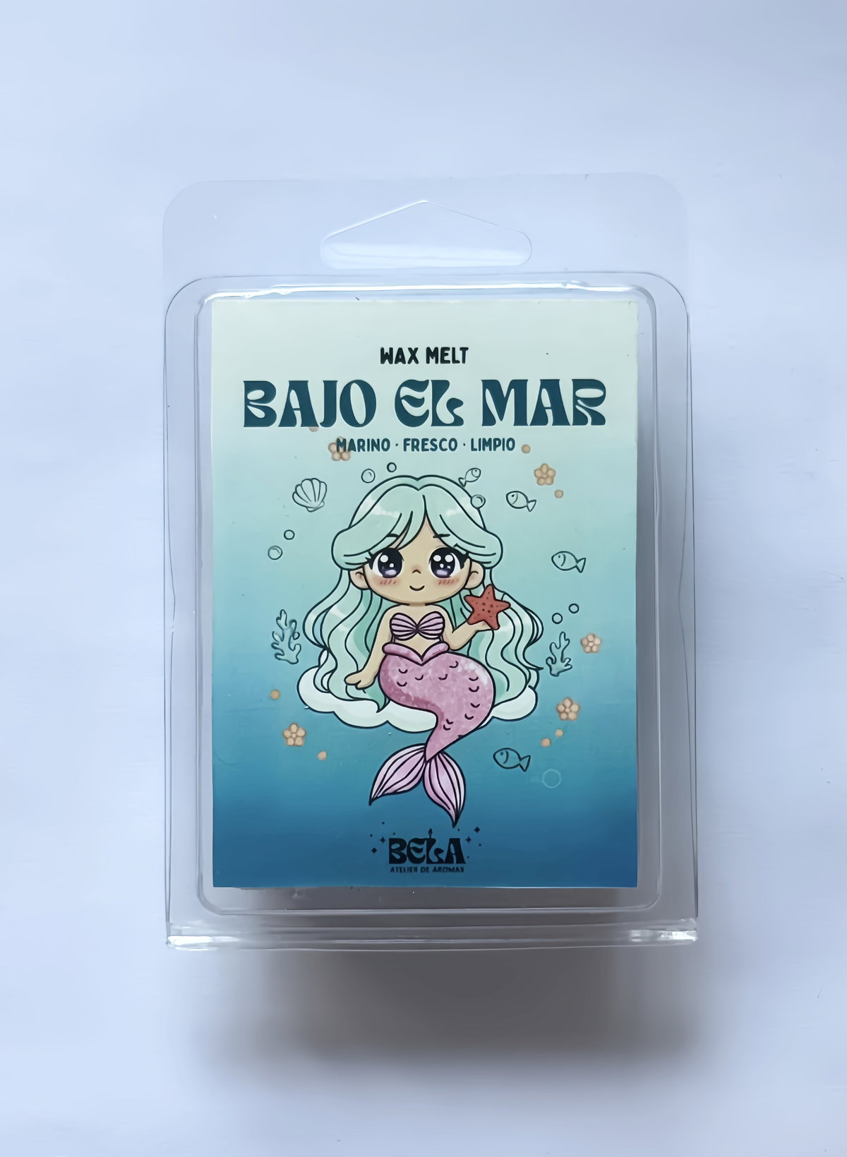 Nuestro wax melt Bajo el Mar evoca la frescura del océano y la sensación de brisa marina en la piel. Un aroma limpio, acuático y revitalizante, inspirado en el sonido de las olas, el aire salino y la calma infinita del mar.